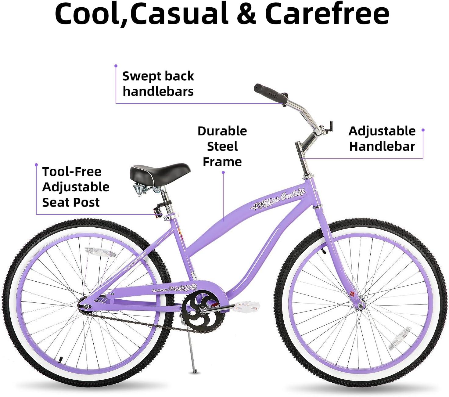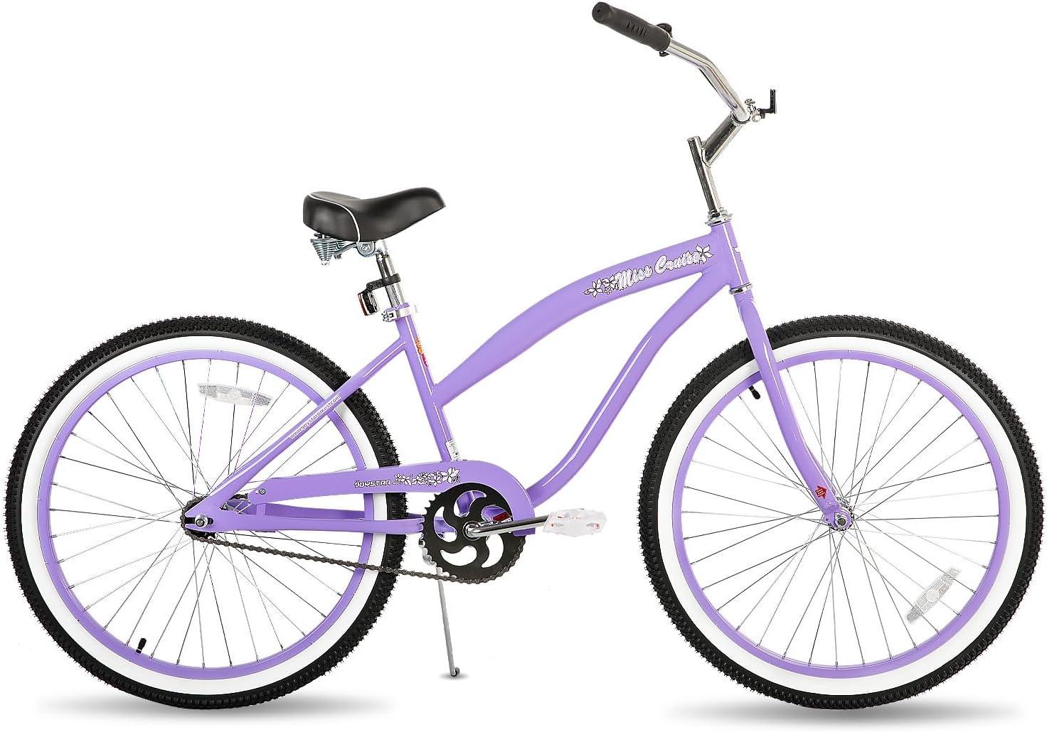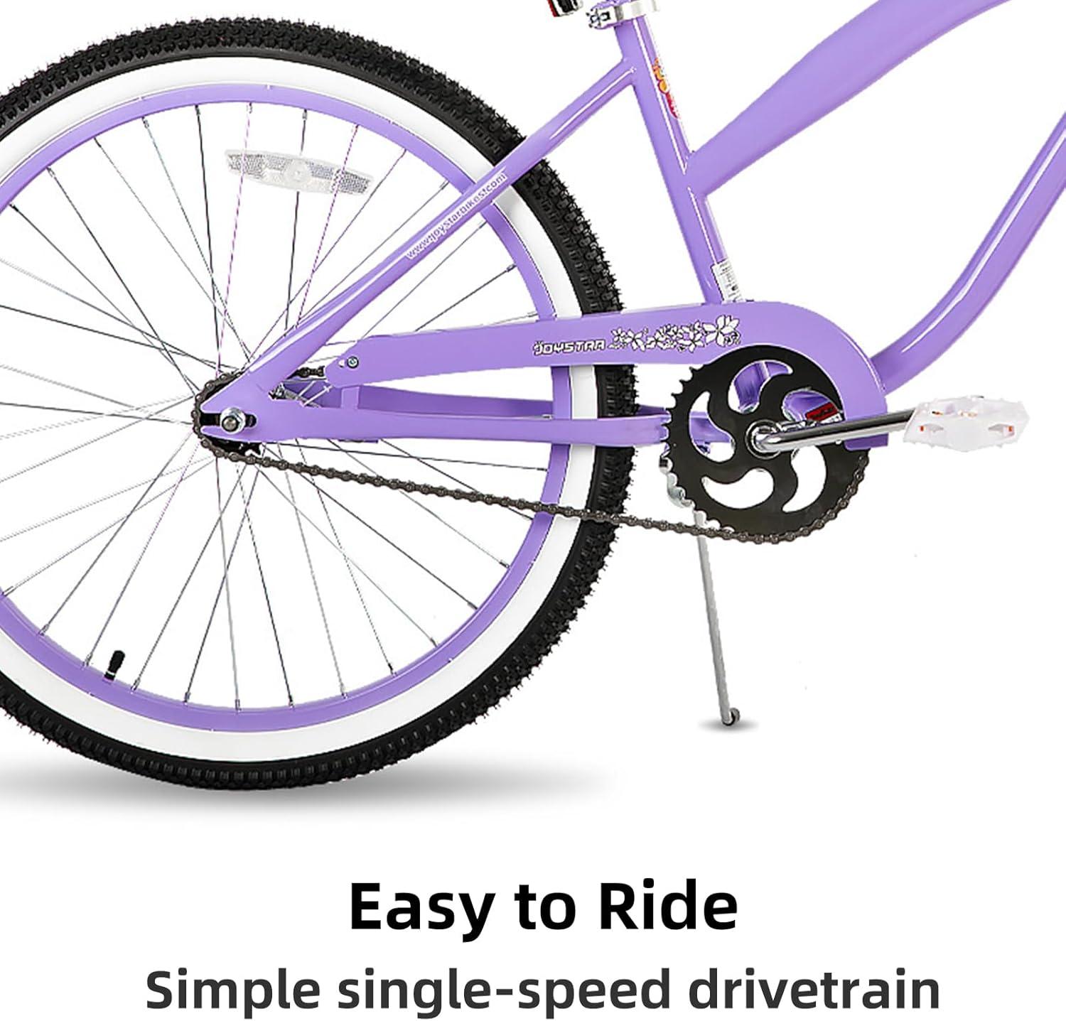 JOYSTAR Beach Cruiser Bike, 20/24/26 Inch Sizes, Perfect for Casual Rides, Ergonomic Upright Design, Single Speed, Simple Coaster Brake(Purple)