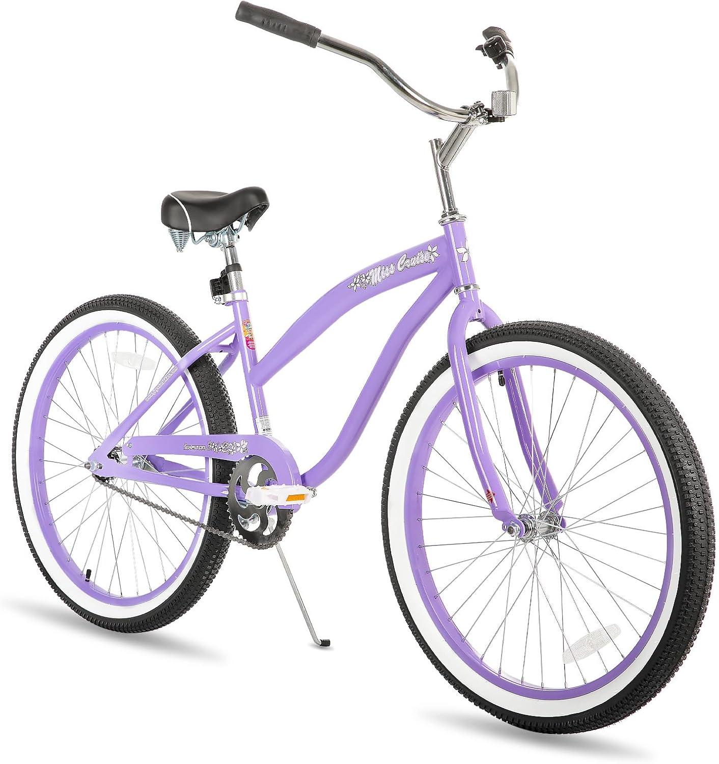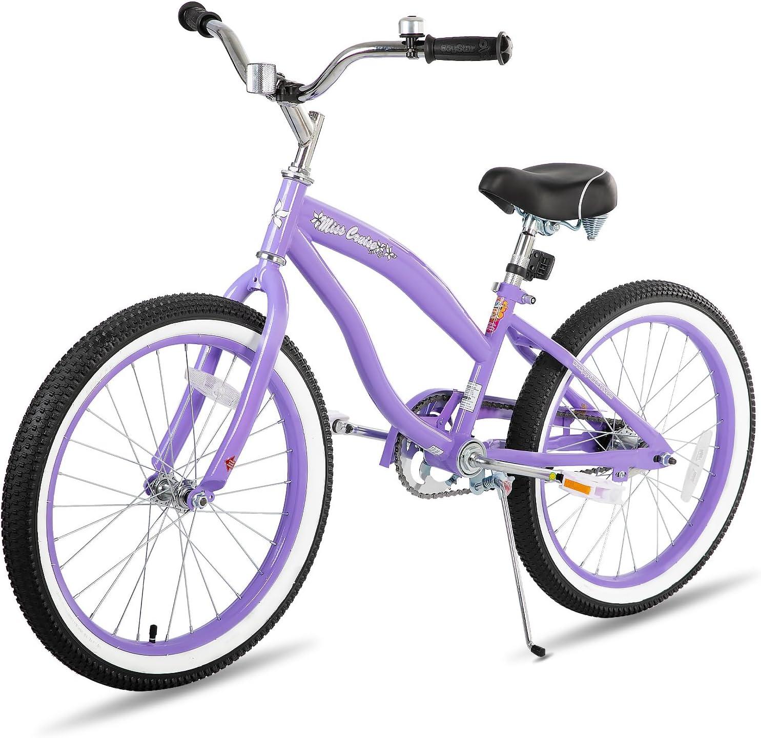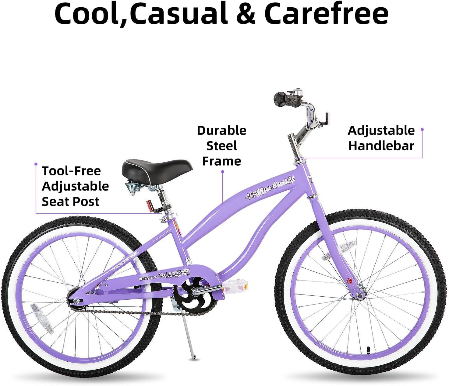 JOYSTAR Beach Cruiser Bike, 20/24/26 Inch Sizes, Perfect for Casual Rides, Ergonomic Upright Design, Single Speed, Simple Coaster Brake(Purple)