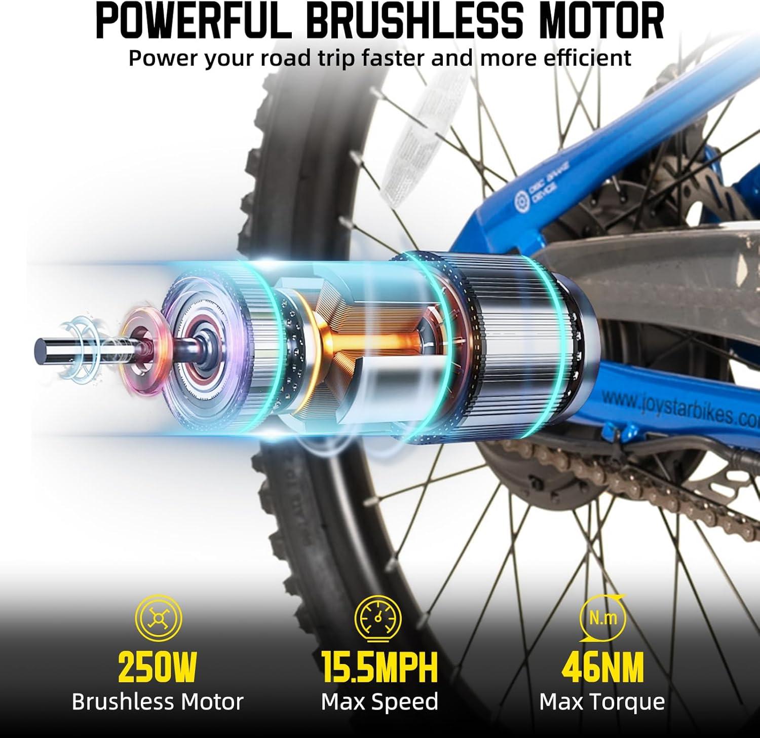 JOYSTAR Electric Bike for Kids Teens Ages 7+ with 250W Brushless Motor, 15 Miles 15MPH Electric Mountain Bicycle with Removable Battery, Safe Mini Ebikes with Dual Disc Brakes, Multiple Colors(Blue)