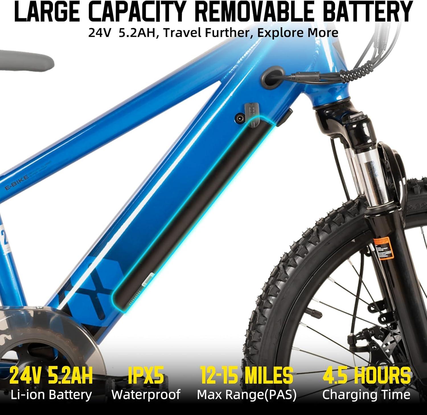 Electric Bike for Kids 7-12 – This ebike offers pedal-assist or normal biking. Perfect for neighborhood trails, outdoor fun, or quick rides to school—a safe, reliable partner for young riders!