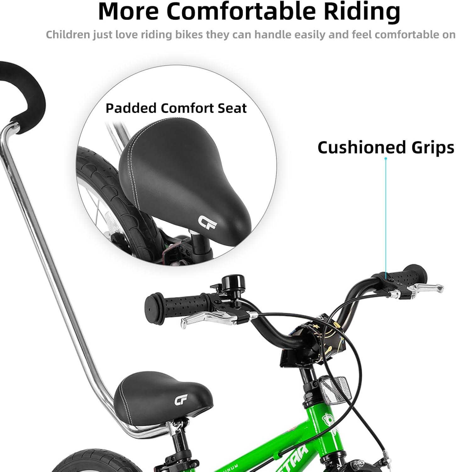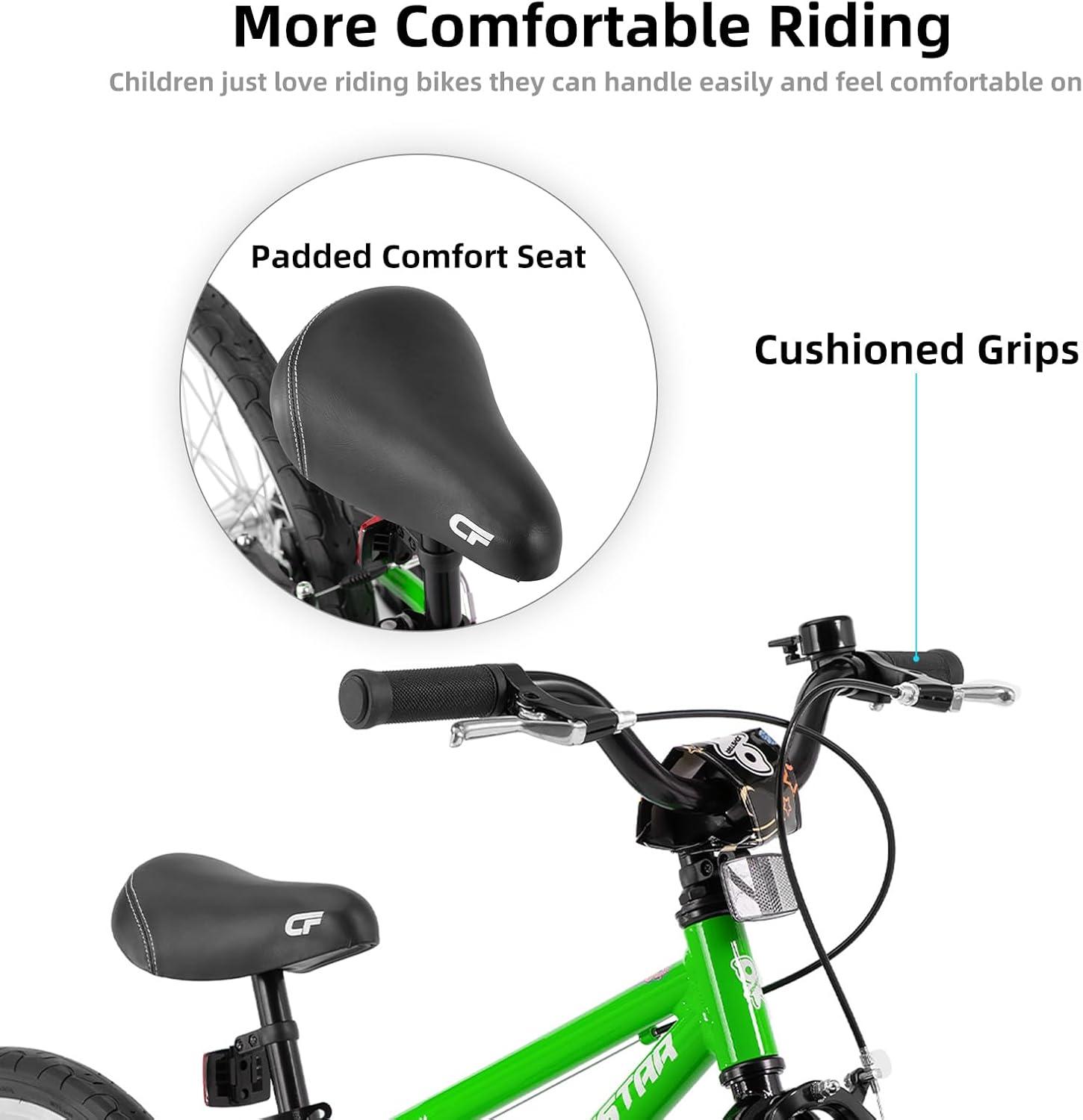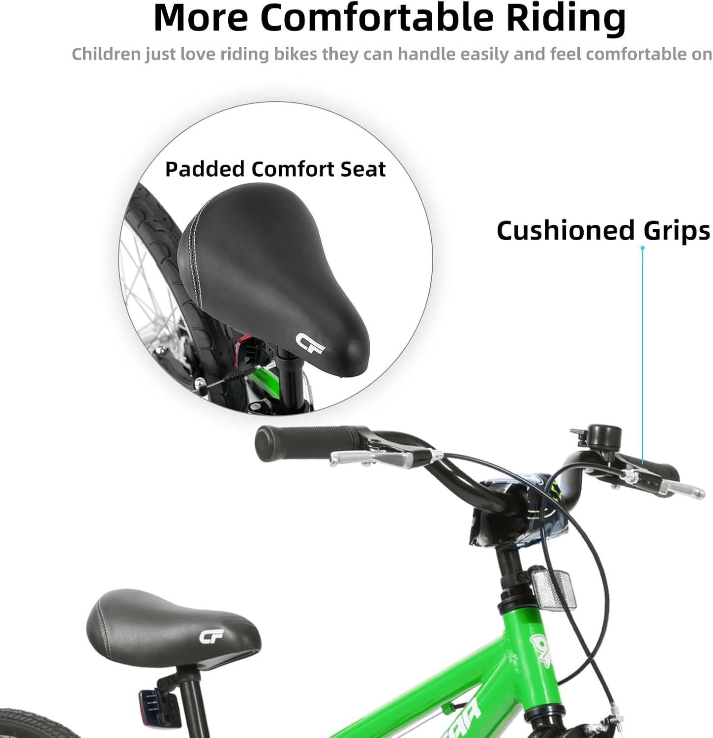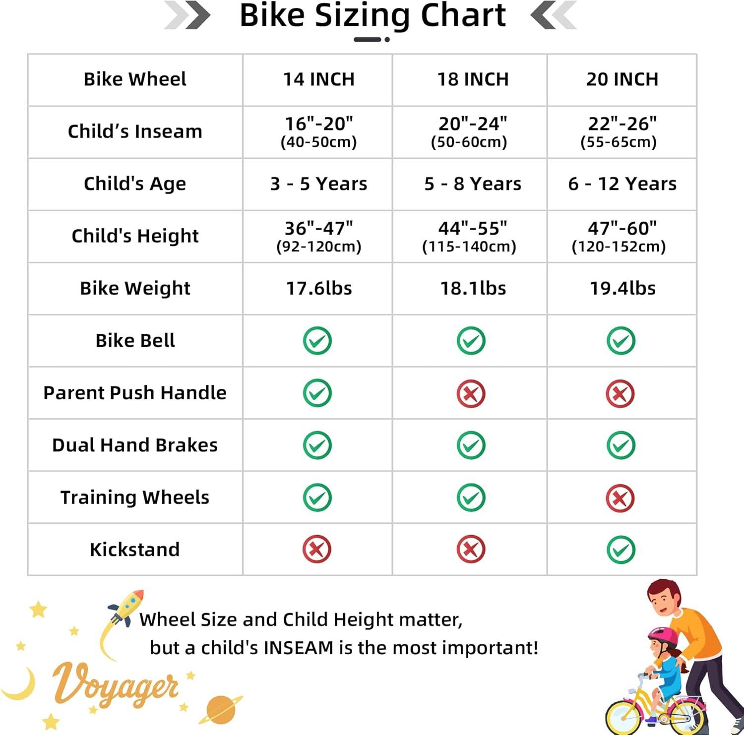 More Size Options – 14, 18, 20 inch kids bikes available, the handlebar and seat height are all adjustable. Use our kids bike size chart, you'll find a perfect size for your little beloved. Note: Please take the kids height into consideration.